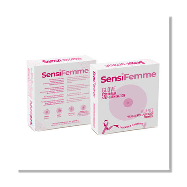 Rękawica Sensifemme to urządzenie do samodzielnego badania piersi wykonane z bezpieczny materiałów medycznych.