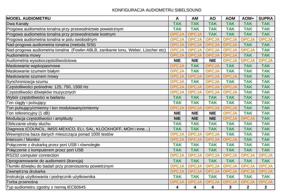 - Oprogramowanie do audiometrii (licencja) Tak
