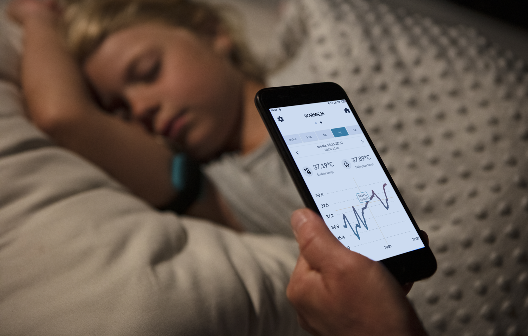 Dla małych: WARMIE to system, który zwiększy komfort życia rodziców dzieci przewlekle chorych. Nocne pomiary temperatury nie będą przerywać odpoczynku, co przełoży się na lepsze samopoczucie w ciągu dnia.