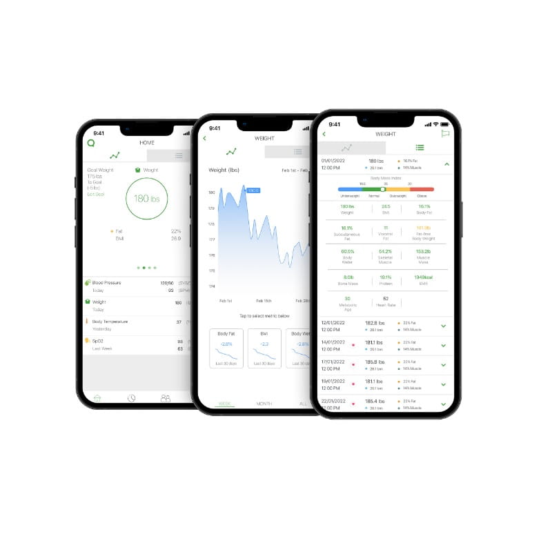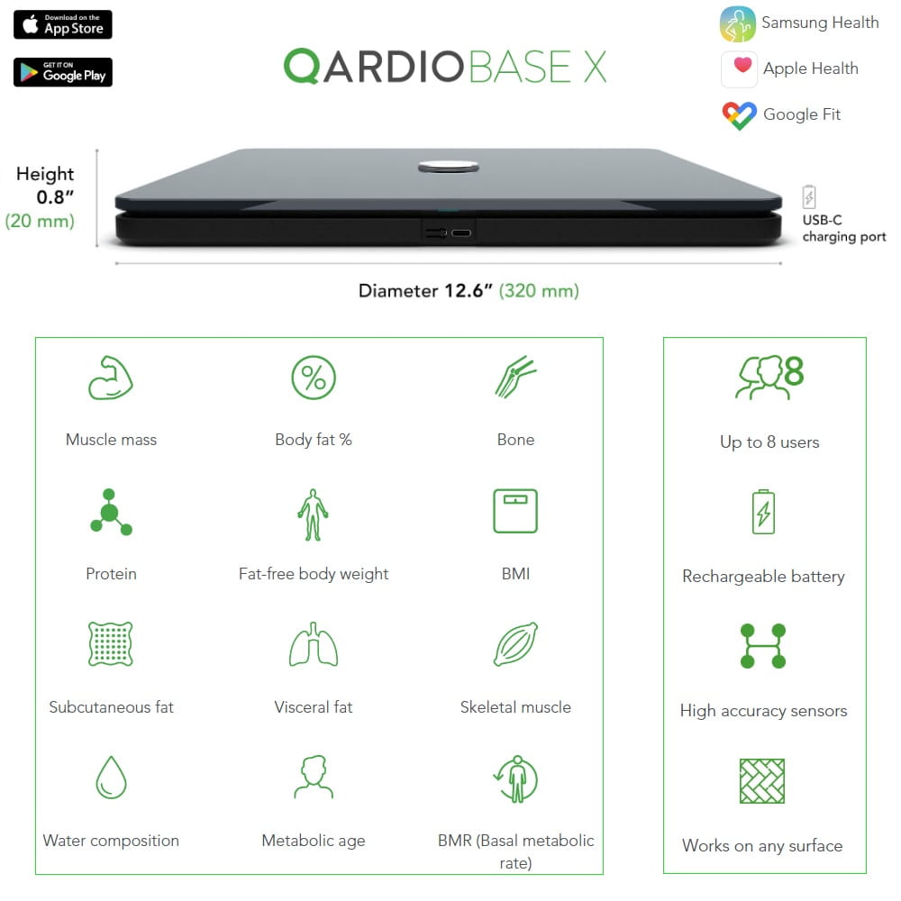 Wszystkie ważne pomiary masy ciała są synchronizowane z telefonem za pomocą bezpłatnej aplikacji Qardio, co ułatwia śledzenie celów dotyczących zdrowia i składu ciała. Opcje udostępniania danych w QardioBase X umożliwiają również łączenie się z lekarzem, gdy jest to potrzebne. Waga współpracuje również z Apple Health, Samsung Health, Google Fit.